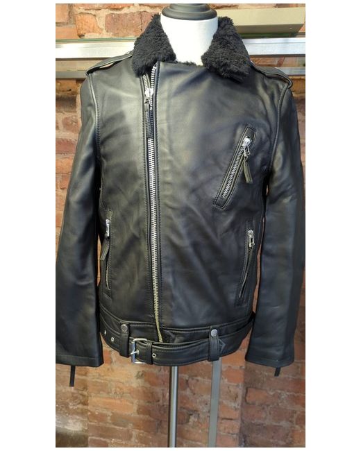 Beautiful Boda Skins Shearling Biker Jacket Black Leather Women’s size Medium