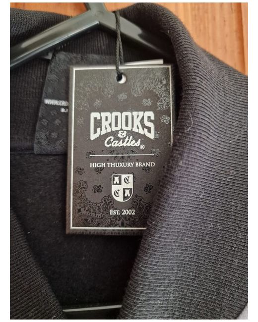 This Crooks and Castles varsity jacket is perfect for men who want to show off their rebellious side. The jacket comes in a classic black colour with the theme of 'corrupt bandits' embossed on it. The outer shell material of the jacket is made of cotton, making it comfortable to wear. The jacket is available in size S and is suitable for regular size types. The style of the jacket is perfect for those who want to keep up with the latest fashion trends. The jacket is brand new and comes with tags, making it an ideal gift for someone special. Get your hands on this vintage-inspired jacket today!