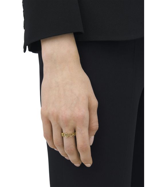 This chic goldtone ring from Alexander McQueen showcases the label's iconic logo lettering. Brass Made in Italy SIZE Band: about 2.5mm W ABOUT THE BRAND Visionary designer Lee Alexander McQueen launched his brand in 1992, which quickly became synonymous with cutting-edge, avant-garde design. Creative Director Seán McGirr has continued the designer's legacy, bringing precision craftsmanship and a feminine vision to the label's signature edge. Fashion Jewelry - Trend Jewelry > Mcqueen > Saks Fifth Avenue > Barneys. McQueen. Color: Pale Gold. Size: 5.75.