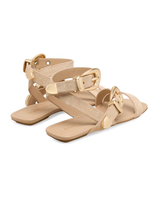 These Maven sandals from Stuart Weitzman, crafted of supple suede, feature a dual buckle-strap design with goldtone hardware. Open toe Buckle closure Suede upper Leather lining Leather sole Made in Spain ABOUT THE BRAND Designer Stuart Weitzman started his career designing for his father's shoe company, before launching his own brand in 1986. Known for his glamorous pumps and over-the-knee boots, Weitzman has also incorporated unique materials in his designs, ranging from Lucite and wallpaper to cork, vinyl and even gold. Today, the label continues to create classic, feminine silhouettes that balance both comfort and style. Women's Shoes - Stuart Weitzman Wmn Shoe > Stuart Weitzman > Saks Fifth Avenue > Barneys. Stuart Weitzman. Color: Adobe. Size: 5.