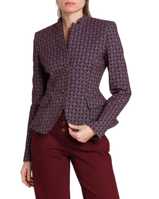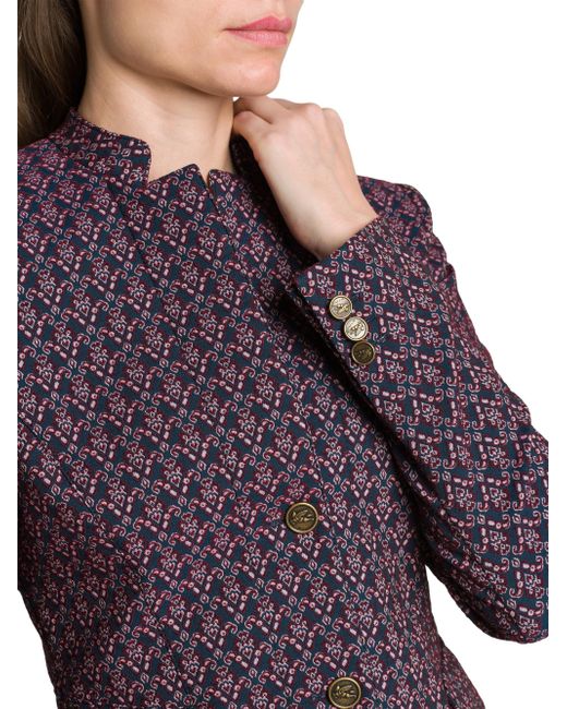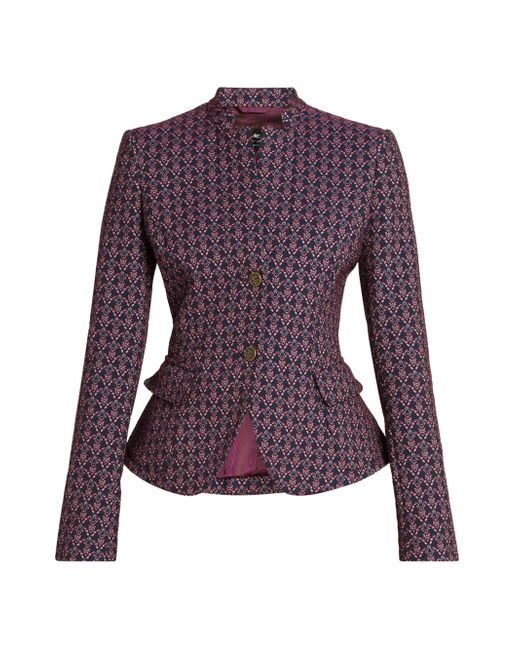 Crafted of patterned jacquard, this Etro jacket is detailed with a cutout stand collar and flap pockets at the side. This tailored piece fastens with button closures at the front. Stand collar Long sleeves Side flap pockets Button-front closure 59% cotton/20% polyester/19% nylon/2% elastane Lining: 52% viscose/48% acetate Dry clean Made in Italy SIZE & FIT Model measurements: 5'10" tall Model is wearing US size 4 ABOUT THE BRAND The Italian fashion house renowned for its eclectic prints and signature paisley motif has been a family-run business since its inception in 1968. Creative Director Marco de Vincenzo continues the brand's legacy with the rich textiles and patterns still used in its clothing, accessories and home décor. Designer Lifestyle - Etro > Etro > Saks Fifth Avenue > Barneys. Etro. Color: Multicolor Blue Base. Size: 0.