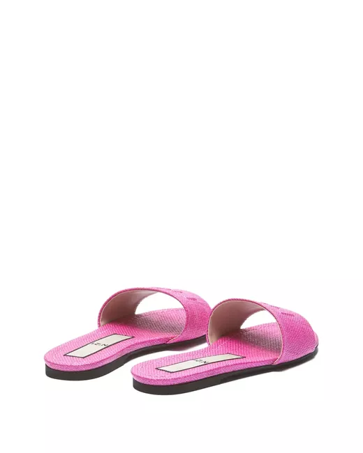 pink interwoven design flat sole open toe slip-on style embossed logo