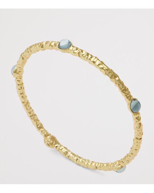 Halcyon Days continues its mission to create treasured keepsakes with the Cabochon bangle. A solar system of enamelled cabochons orbits a bangle of 18-karat gold-plated brass hammered to create a richly uneven texture and depth. Unique and elegant, it will add an extra dimension to your curated stack.
