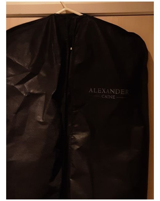 This is a black leather bomber jacket by Alexander Cain, designed for men in size large. It features a collared neckline and is a skinny fit. This jacket is made with soft Italian leather, it feels beautiful. The jacket is XL but definitely fits like a skinny large and I've had many leather jackets. It looks and feels high end designer.