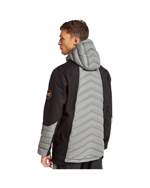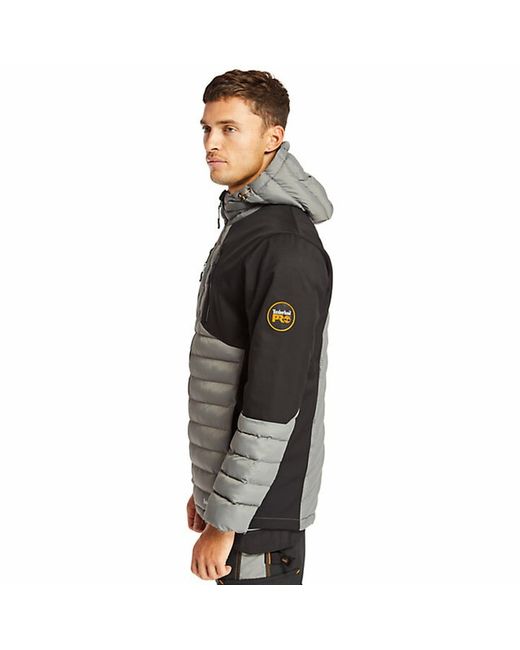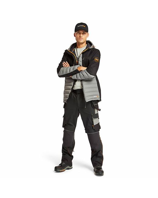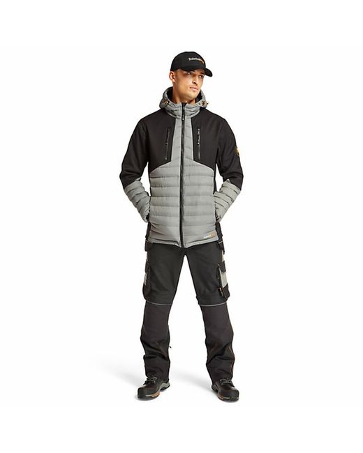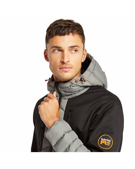 100% recycled polyester softshell. Timberland PRO® FLEX technology. Insulated, baffled ergonomic hood with toggle adjuster and extended chin guard. Two large chest pockets. Do Not Wash. Two large concealed zip pockets.