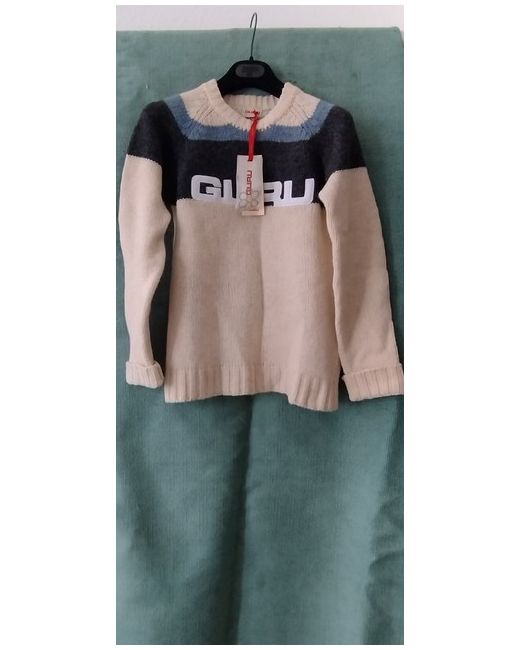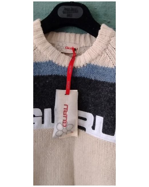Rare to find,.now vintage piece, in Shetland wool, knitted jumper from GURU. With long sleeves, a round neckline and a pullover style, this jumper is perfect for casual occasions and travel. The multicoloured wool material and knit fabric type provide warmth and comfort during the colder months, while the logo accents add a vintage touch. This jumper is available in size S and is suitable for women as well.