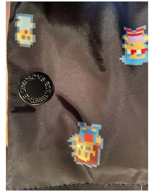 Rare collectible puffer bomber jacket. Black with pacman/Simpson’s print and wool cuffs. Features Button fastening + two outer pockets. Gender neutral, it would fit men’s Small and women’s 12. Also suitable for teens. For reference, the model in the pictures wears women’s size 12 and is 5’10’’. New with tags, unworn and immaculate. Warm and wind proof ideal for the cold season approaching. Limited edition All items are posted in recycled packaging