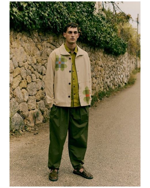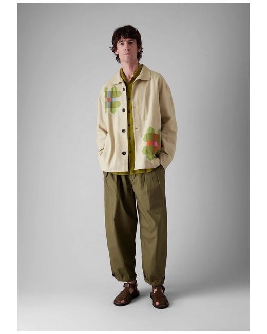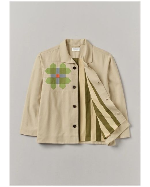 Cotton canvas. Fully lined. Corozo buttons. Side seam pockets. Sleeves lined in cotton cambric. Edge stitching. Our canvas jacket features vibrant patchwork motifs inspired by pinwheels. With a fly away collar, it falls to a relaxed shape.
