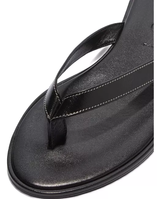 black nappa leather thong design flat sole