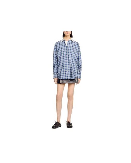 Sandro Rhinestone Check Shirt.Color:Blue.Size:FR 0/US XS.Material:100% cotton.Tops.