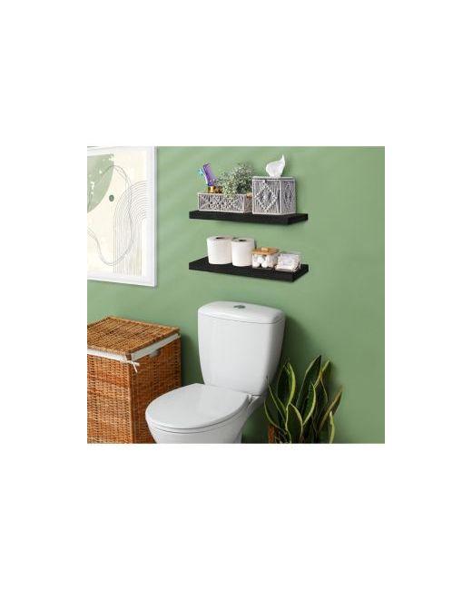 Black 2 Pack 16x22 Solid Wood Floating Shelves for Bathroom Decor Books Bedroom Living Room