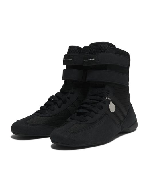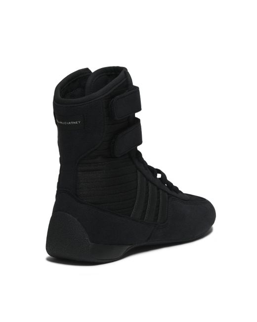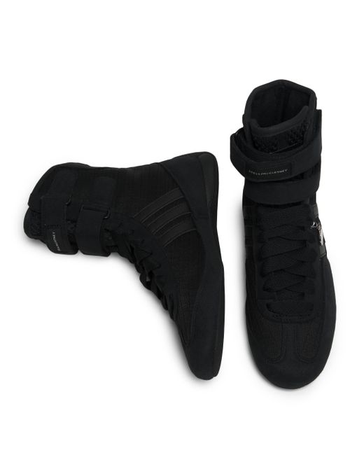 From the Stella McCartney x adidas Collaboration. Drawing inspiration from wrestling shoes and embracing its bold '80s heritage, this Rasant sneaker commands attention with a high-top silhouette and extended lace-up construction. A classic T-toe design and iconic 3-Stripes, sharply angling up the sides, further enhance the vintage spirit. Round toe Lace-up style Hook-and-loop closure Textile/synthetic upper Textile/synthetic lining Synthetic sole Imported SIZE Shaft height: about 6" Leg opening: about 8". Women's Shoes - European Designer Shoes > Stella Mccartney > Saks Fifth Avenue > Barneys. Stella McCartney. Color: Black. Size: 5.
