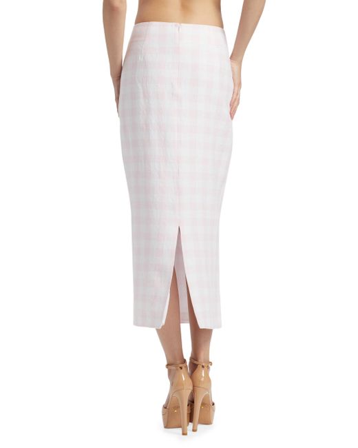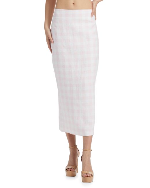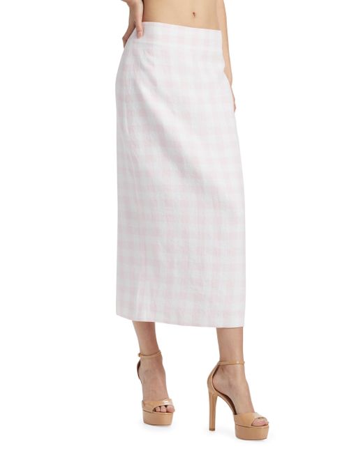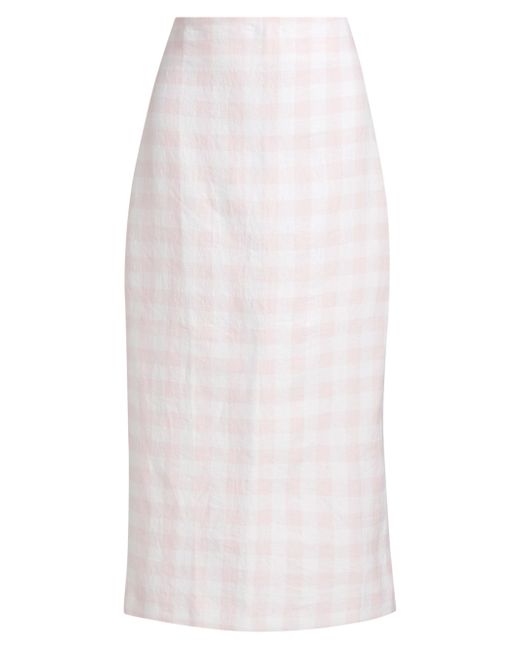 This LoveShackFancy Biselle midi-skirt is crafted of soft linen and features a checked pattern and back slit for easy movement. Back slit Concealed back zip closure 100% linen Lining: 100% cotton Machine wash Imported SIZE & FIT About 33" long Model measurements: 5'10" tall Model is wearing a US size 4. Contemporary Sportswear - Trend > Loveshackfancy > Saks Fifth Avenue > Barneys. LoveShackFancy. Color: Angel Pink. Size: 00.