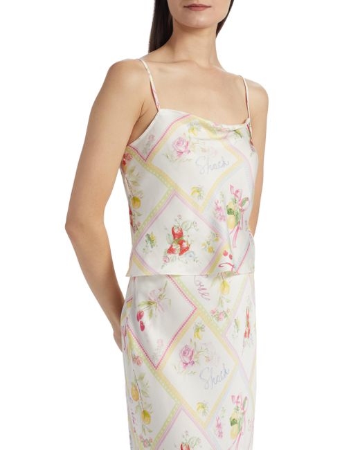 This LoveShackFancy Cabi crop top is crafted of a luxe silk blend and features a mixed print and a square neck. Square neck Adjustable spaghetti straps Pulls over 60% silk/40% viscose Dry clean Imported SIZE & FIT About 19.5" from shoulder to hem Model measurements: 5'10" tall Model is wearing a US size Small. Contemporary Sportswear - Trend > Loveshackfancy > Saks Fifth Avenue > Barneys. LoveShackFancy. Color: Tutti Fruitti. Size: XS.