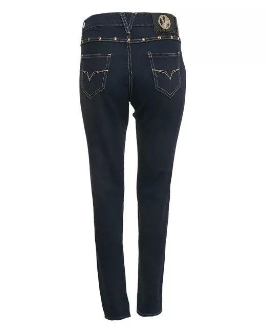 dark blue studded detailing five-pocket design embroidered back pockets zip and button fastening Condition: GOOD. This previously owned and used item is in good condition with minimal signs of use. This may include fading of material or plating and scratches.