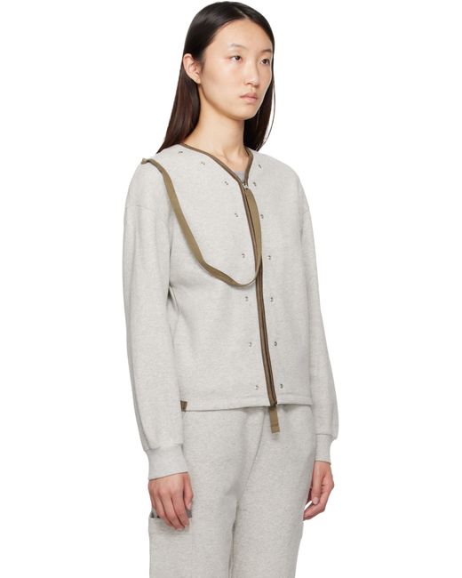 Oversized organic cotton fleece jacket. · V-neck · Rivets and faux-leather piping at neck and front · Semi-detachable strap at zip closure · Press-stud seam pockets · Adjustable press-stud tabs at hem · Dropped shoulders · Rib-knit cuffs Supplier color: Grey
