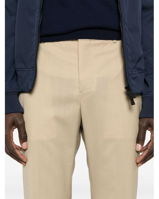 sand beige concealed fly and button fastening belt loops two diagonal pockets to the sides two rear button-fastening jetted pockets