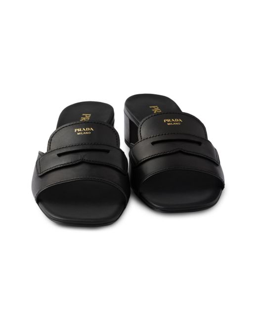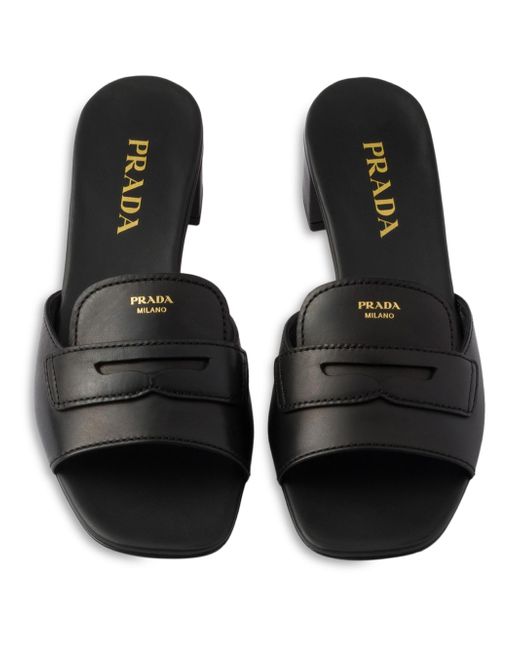 Screen-printed logo Leather sole with metal lettering logo Leather-covered heel, 35mm / 1.37'' Imported 100% Calf Leather. Lsd Rtw - Prada Rtw > Prada > Saks Fifth Avenue > Barneys. Prada. Color: Black. Size: 5.