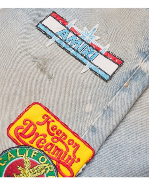 Part of amiri's inspiration for the Spring/Summer 2025 collection comes from the idea of life on the road, a notion expressed in the patchwork design of the Station Patch denim shorts. The multicoloured, embroidered adornments recall the look of souvenir patches that would be proudly displayed on suitcases as a record of one's travels.