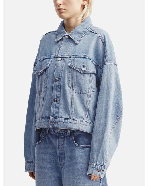 T By Alexander WangClip Trucker JacketWashed cotton denim fabricTwo chest pocketsTwo side pocketsButton closureAdjustable waistUnlinedColor: Vintage Bleach Blue