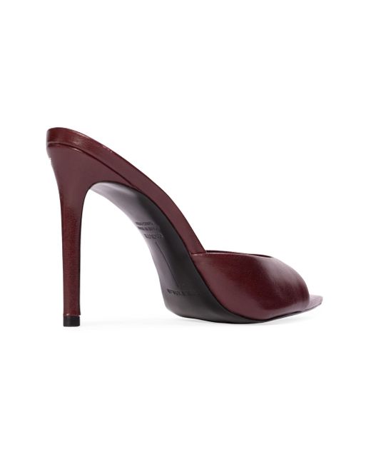 Pointy toe slipper mules, set on a straight stiletto heel. Made with smooth goat leather. Heel Height: 100mm / 4'' Upper: Leather Sock: Leather Lining: Leather Sole: Leather Imported. Lsd Shoes - Shoes Lsd Mp > Black Suede Studio > Saks Fifth Avenue > Barneys. Black Suede Studio. Color: Bordeaux Leather. Size: 5.