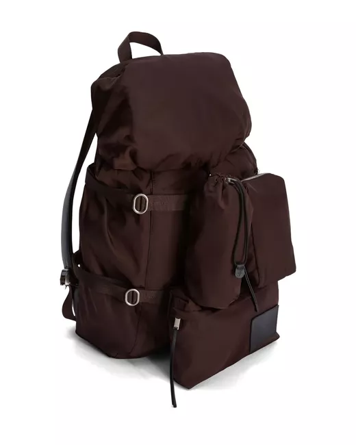 walnut brown foldover top front hook and eye fastening two adjustable shoulder straps multiple patch pockets