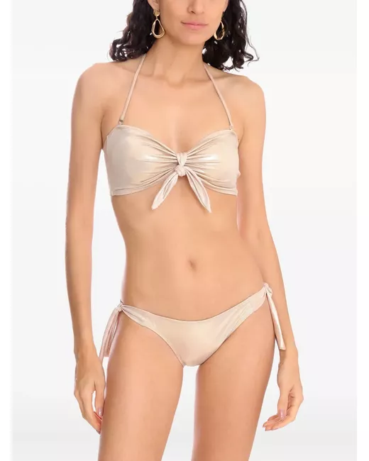gold-tone metallic effect detachable shoulder straps tie-front detail low-rise side-tie bottoms Be mindful to try on swimwear over your own garments.