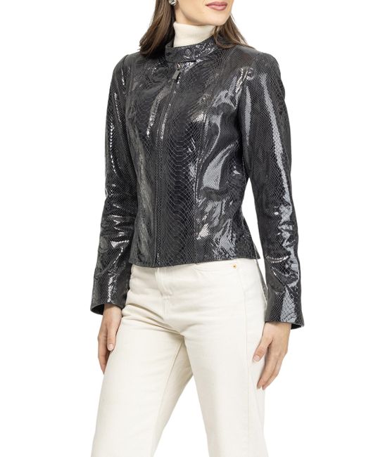 Metis suede python printed zip jacket. Stand Collar Straight sleeves Zipper closure Acetate Lining Real Lamb Suede from Nigeria, dyed Professional cleaning only Imported Model is 5'8'' wearing size Small Garment is approximately 21'' from shoulder to hem. Lsd Rtw - Womens Rtw Lsd Mp > Gorski > Saks Fifth Avenue > Barneys. Gorski. Color: Anthracite. Size: XS.