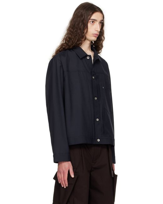 Plain-woven wool-blend jacket. · Spread collar · Button closure · Tucks at front · Patch pocket at chest · Seam pockets · Buttoned barrel cuffs · Pleats at back yoke · Cinch strap at back · Unlined Supplier color: Navy