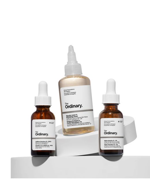 With a name like The Bright Set, it's little wonder this trio by The Ordinary includes three products designed to visibly brighten skin. Start with the Glycolic Acid 7% Exfoliating Toner, a daily aha exfoliating toner designed to prep skin. Follow-up with Alpha Arbutin 2% + ha, a daily serum that helps even skin tone and reduce the look of dark spots. To finish, the Caffeine Solution 5% + egcg is an eye serum that helps to brighten tired eyes, targeting puffiness with a 5% caffeine concentration.