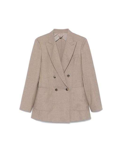 light brown double-breasted button fastening chest welt pocket two side patch pockets Italian rear vents