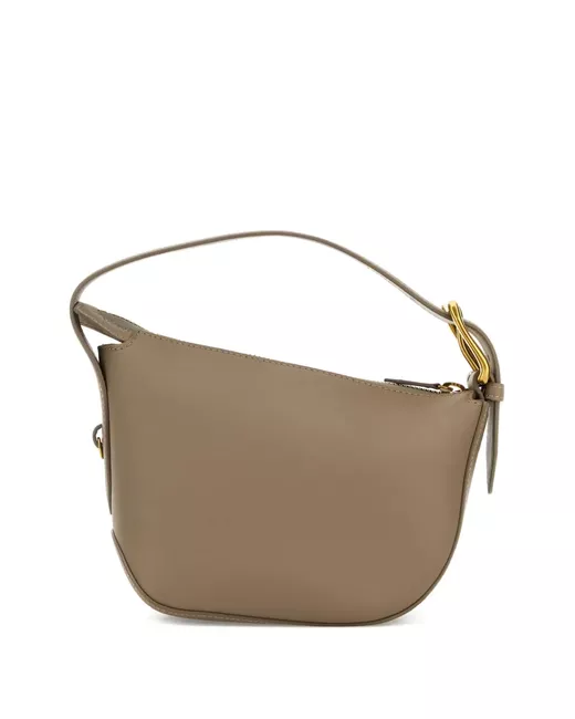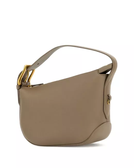 taupe curved shape zip fastening top handle gold-tone metal hardware leather body
