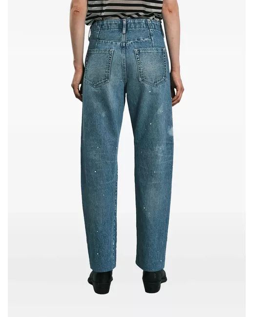 Paint-splatter distressed tapered jeans