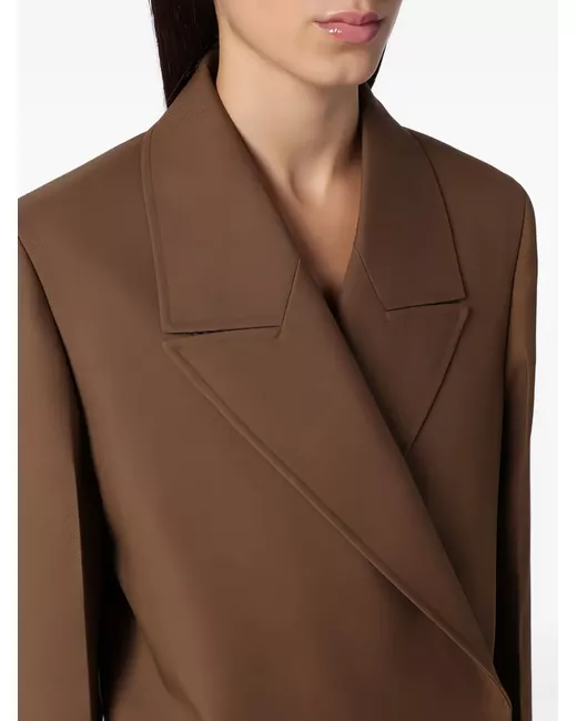 chocolate brown double-breasted button fastening two side flap pockets pleat detailing wide notch lapels