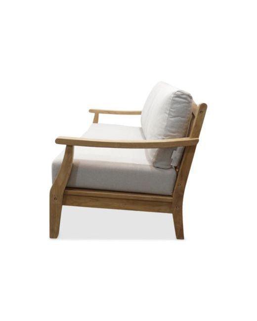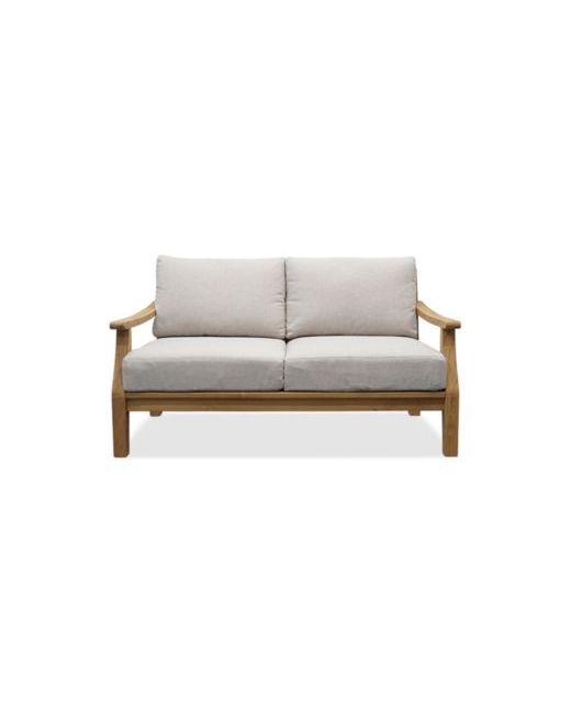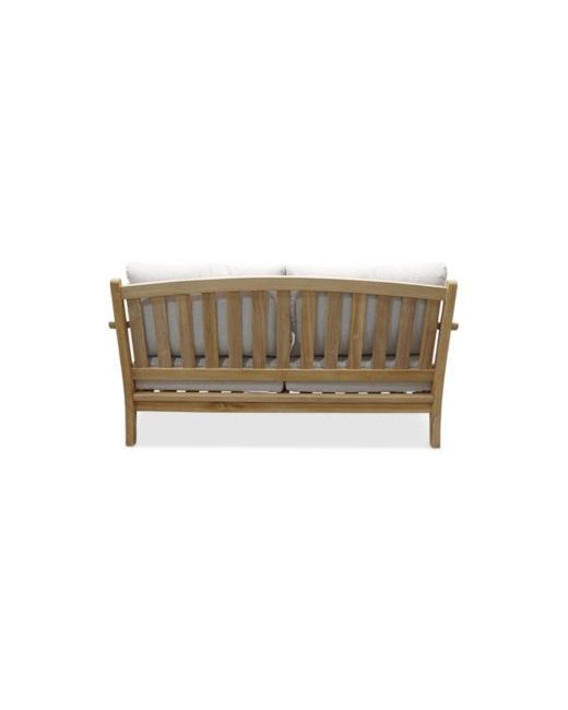 Wondrous teak construction provides an earthy feel to this beautiful outdoor seating set. The gentle curves of the arms are complemented by delightful soft fabric that blends magnificently with the natural teak.