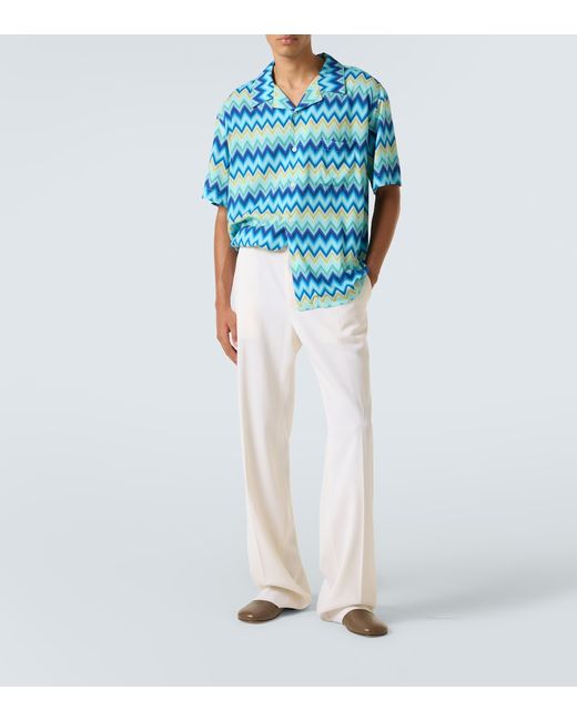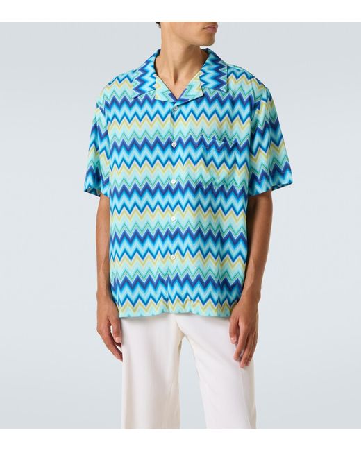 Material: 100% viscose. Care instructions: dry clean. Made in Tunisia. Designer color name: Blue and green tones. Item color: blue, green. Cuban collar shirt. Closure: buttoned front.