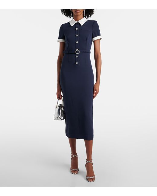 Material: 100% polyester. Care instructions: dry clean. Made in China. Designer color name: Navy. Item color: blue, white. Material II: 100% polyester. Lining: 100% polyester. Closure: partially buttoned front. Collar: classic (Straight point). Pockets: welt pocket. Belt loops. Detachable belt. Short vent. Fully lined.