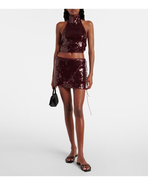Material: 100% polyester. Care instructions: machine wash at 30 degrees. Made in Italy. Designer color name: Burgundy. Item color: burgundy. Lining: 82% polyamide, 18% elastane. Closure: wrap-front.