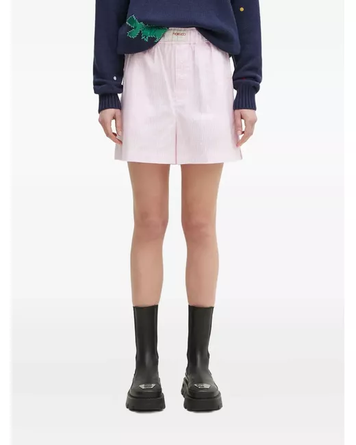 baby pink gingham check pattern elasticated waistband button fastening embroidered logo back pocket