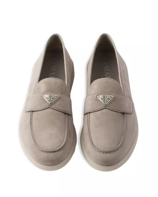 light grey moc stitcking almond toe flat rubber sole triangle logo