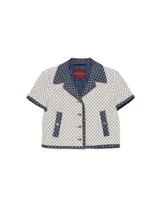 Women's Blue Short-sleeved Geometric-pattern Jacket