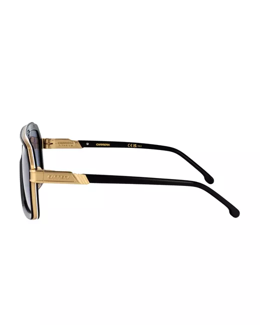 black navigator frame gold-tone logo lettering gradient lenses straight arms These glasses come with a protective case.