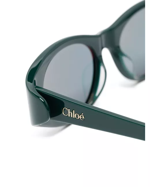 green blue tinted lenses oval frame straight arms These glasses come with a protective case.