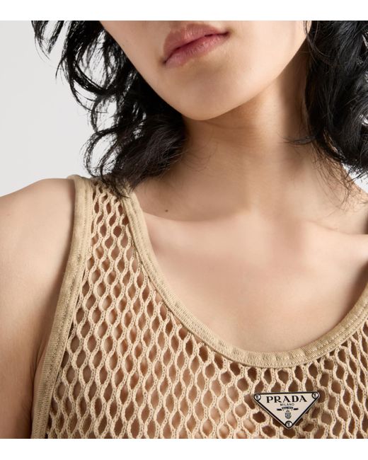 Showcasing Prada's eye for statement fabrics, this tank top is enlivened with a mesh composition - allowing you to opt for a semi-sheer ensemble, or style it atop a contrasting base layer. As is to be expected from the Italian House, the Triangle logo signs off the piece in sleek fashion.