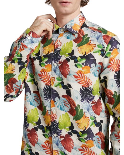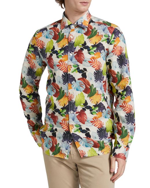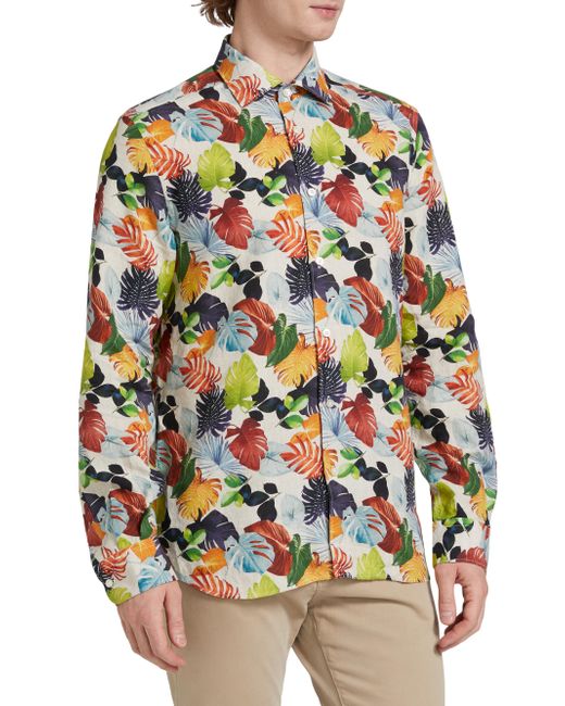 ONLY AT SAKS. Crafted of breathable linen, this Saks Fifth Avenue woven shirt conveys a vibrant leaf print featuring a classic button-up silhouette. Spread collar Long sleeves, buttoned cuffs Button-front closure 100% linen Dry clean Imported SIZE & FIT Model measurements: 6'2" tall, 40" chest Model is wearing a US size Medium ABOUT THE BRAND This only-at-Saks line offers a complete wardrobe in high-quality fabrics and a classic fit. Standouts include tailored suiting, casual officewear, laid-back weekend looks and elegant evening pieces. Mens Pvt Brands - Sfamc Sportswear > Saks Fifth Avenue > Saks Fifth Avenue > Barneys. Saks Fifth Avenue. Color: Orange. Size: Small.