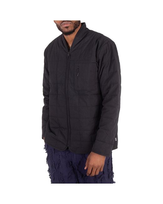 Rains Mens Outerwear. Fashion category: Coats & Jackets. SKU: 19400-01 BLACK. Color: Black. Rains Mens Black Giron Liner Jacket. Made from ripstop fabric, the Giron jacket features a shawl collar, double-faced quilting, and is filled with insulating padding. It includes a zipped chest pocket, slip pockets, and snap-fastening shirt cuffs, along with bonded cuffs and hem for added durability. 100% nylon.