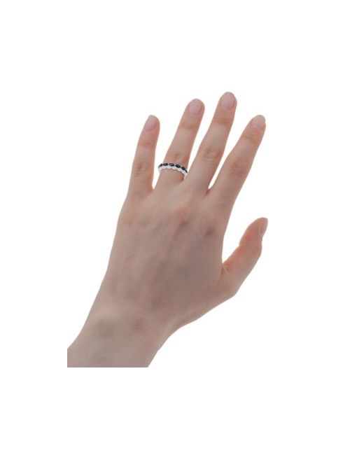 Bring timeless appeal to your ensemble when you finish it with this double-row blue sapphire and diamond ring.