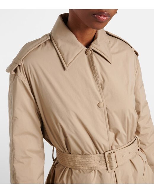 Material: 100% polyamide. Care instructions: hand wash. Made in Romania. Designer color name: Beige. Item color: beige. Lining: 100% polyamide. Filling: 100% polyester. Filling II: 90% down, 10% feathers. Details: 100% calf leather. Contains non-textile parts of animal origin. Closure: snap-buttoned front. Pockets: welt pockets. Detachable belt.