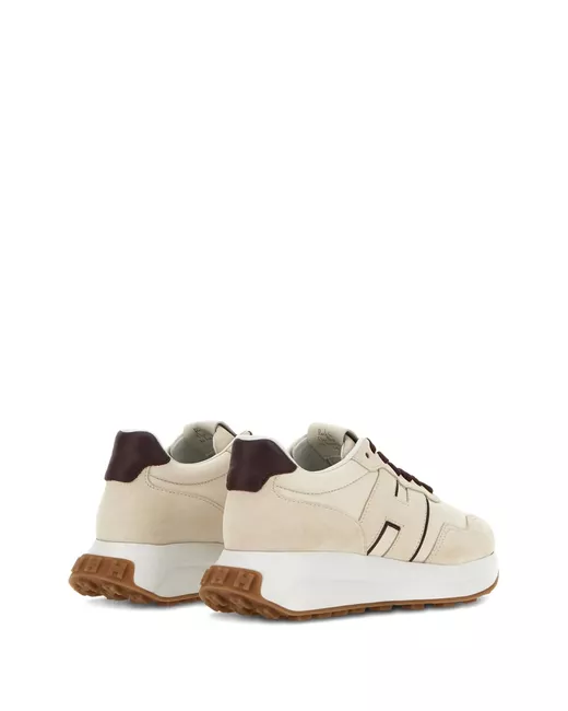 beige front lace-up fastening logo-embellished side panels round toe branded insole