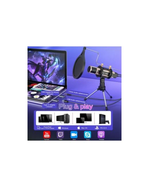 The Usb and 3.5mm Condenser Microphone is perfect for iPhone, computer, or phone users looking for a versatile and high-quality microphone for streaming, podcasting, Asmr, and video recording. It features a Usb adapter for iPhone/iPad, Type-c adapter for modern devices, and a 3.5mm audio cable for devices with a headphone jack. Plug-and-play setup with no drivers required for compatibility across Windows, iOS, macOS, Linux, Android, and more.